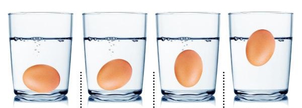 1. O ovo quando está fresco afunda totalmente!