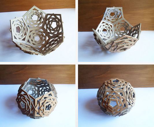 Em seguida, faça a base da luminária, cortando vários pentágonos e colando um ao outro.