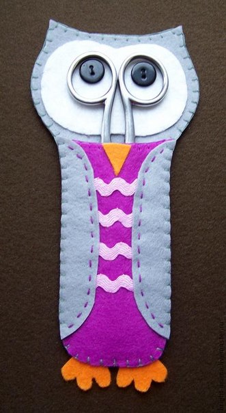 Logo após, para finalizar a sua peça, basta você montar o seu porta-tesoura, começando por costurar os detalhes nas partes que ficarão na frente e montando os olhos, e por último juntando da parte da frente e a parte detrás com ponto caseado feito à mão. E está pronto!!!
