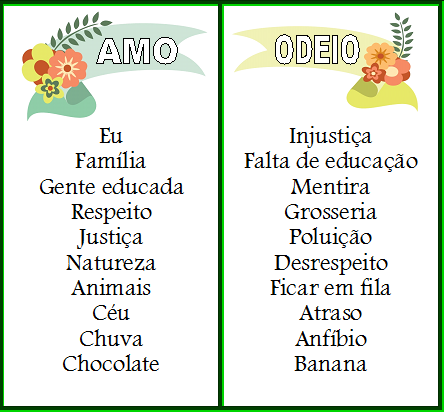 • Dizer 10 coisas que ama e 10 coisas que odeia