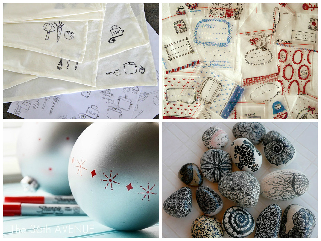 Portanto se você é como eu, e usa caneta permanente apenas para marcar etiqueta de uniforme da criançada, já aviso que vai se surpreender com os projetos abaixo. Descobri um mundo de possibilidades! Main-image-sharpie2