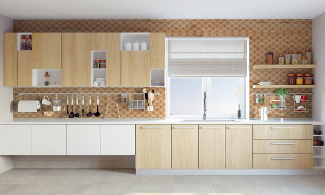 Um jeito bacana de fazer isso é aplicar um revestimento 3d (saiba mais) em uma parte de uma das paredes da cozinha. Escolha uma parede que seja mais visível e uma região dela que fique mais afastada da pia e do fogão. A matéria-prima desse revestimento é madeira, emprestando naturalidade e leveza. A aplicação é bem fácil de fazer. Se você não quiser abandonar a paleta de cores que já escolheu para a cozinha, tudo bem. A madeira desse revestimento pode receber tinta e se adequar à cor protagonista.