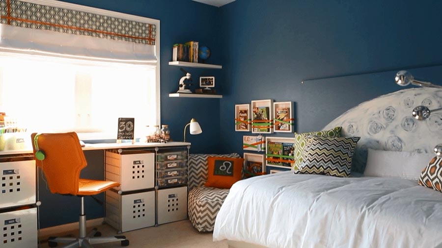 Semelhante às meninas, é necessário conhecer a personalidade dos futuros donos do quarto e levar em consideração sua idade. É muito bacana criar uma paleta de cores diversificada como contrate, tendo como base uma paleta de cores mais neutras.Os meninos preferem quartos com cores mais sóbrias e mais discretas, mas você pode usar a imaginação e investir em paredes com desenhos temáticos.