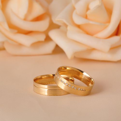 - Existem muitos modelos, mas o costume no Brasil são alianças de ouro.