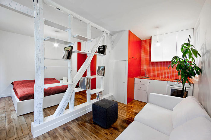 O ambiente é planejado desde a planta, sendo construído com uma pequena cozinha, quarto e sala no mesmo ambiente, separando apenas o banheiro, para dar mais privacidade. Alguns modelos podem contar com uma pequena varanda, onde pode ser planejada uma sala de jantar, por exemplo.