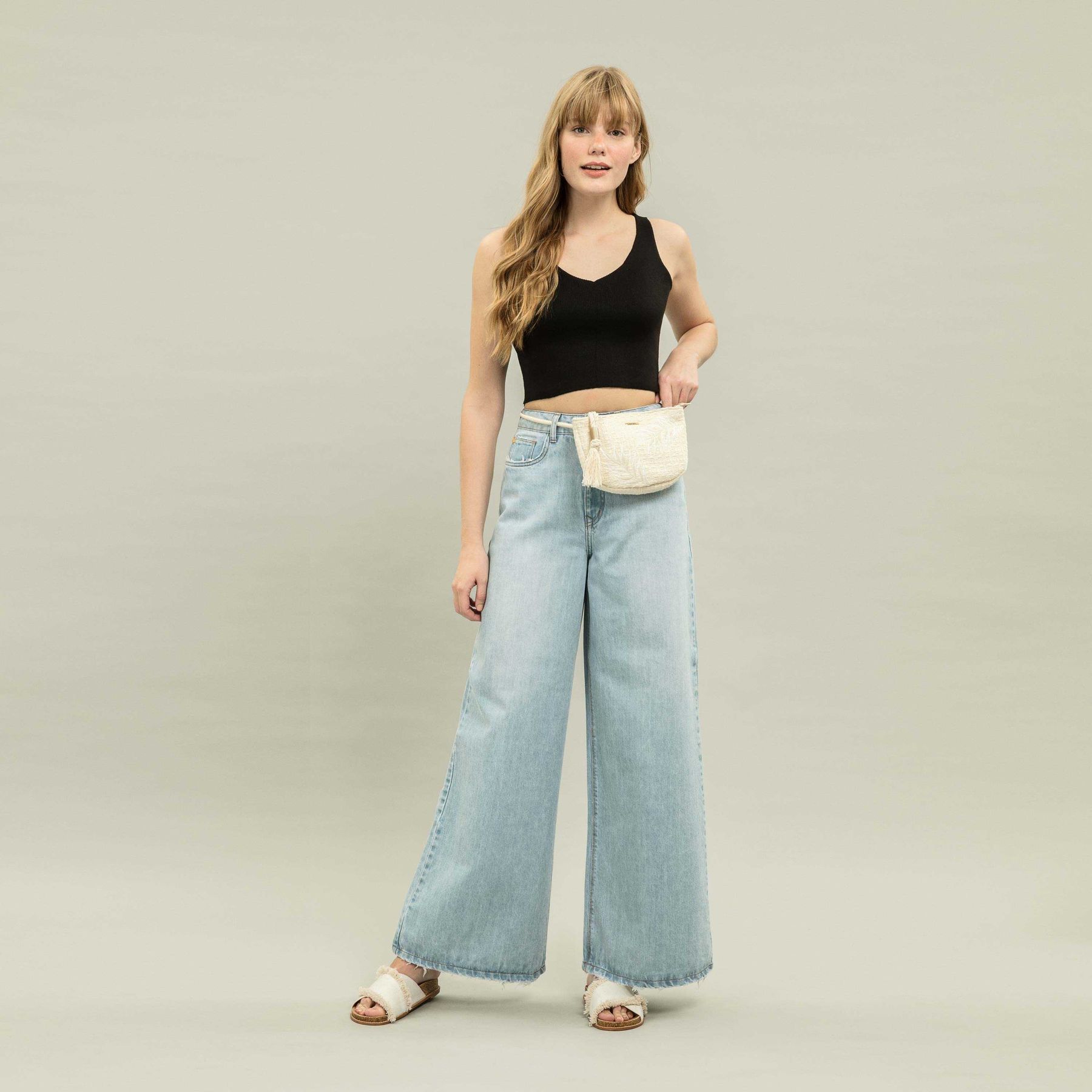 O wide leg jeans (jeans de perna larga, em tradução livre) é a peça-desejo da vez. Com uma modelagem soltinha, este jeans traz uma proposta que une conforto e estilo, sendo ideal para as altas temperaturas do verão. Mas não se engane: apesar da semelhança, o wide leg jeans é diferente do mom jeans, da pantalona e da calça pantacourt jeans.