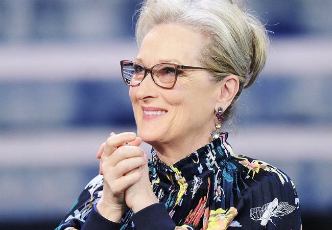 A maravilhosa Meryl Streep sabe como ninguém deixar seu visual elegante e poderoso. Ela também está passando pela transição capilar, deixando naturais – a não ser que tenha que fazer alguma personagem que requeira mudança. Ela tem traços ainda da coloração, porém com parte do cabelo já branco.