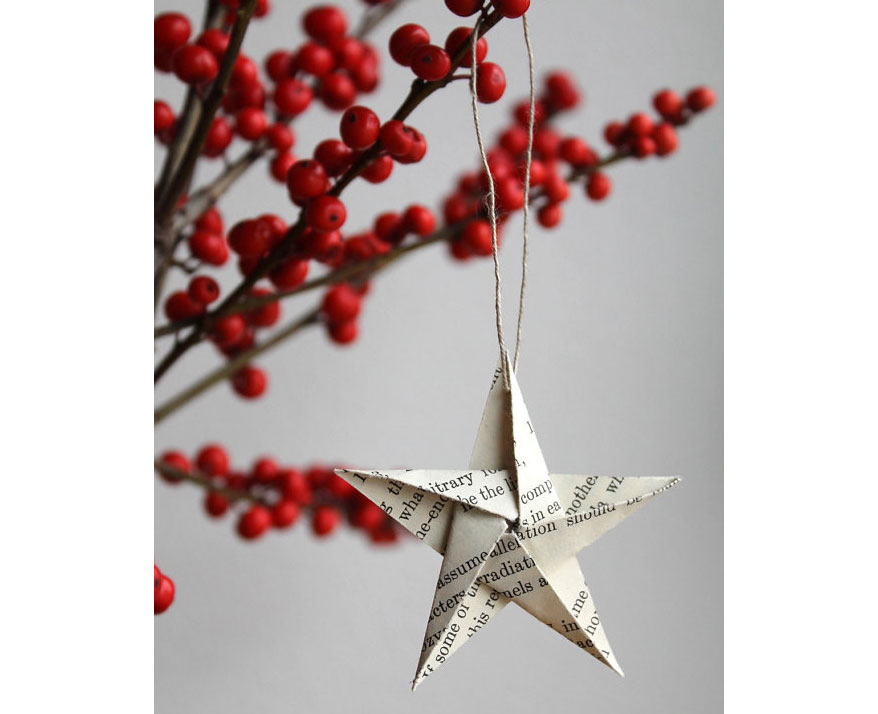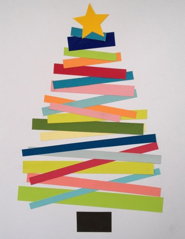 Recortes ou dobraduras de papel organizados em fitas substituem os clássicos cordões dourados ou prateados que enfeitam a árvore. Podem também ser pendurados em paredes e janelas, deixando a casa mais charmosa.