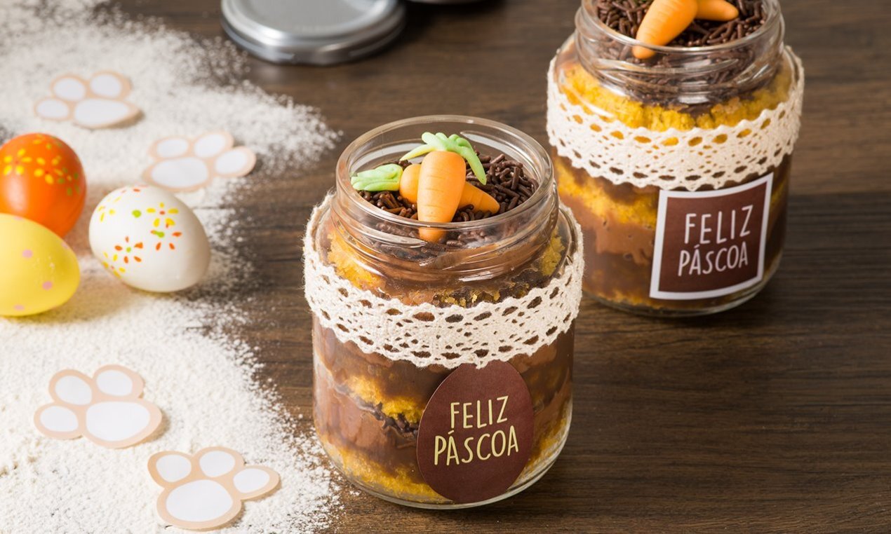 Os bolos de pote também fazem parte das ideias para vender na Páscoa, por conta da sua procura e popularidade no mercado.