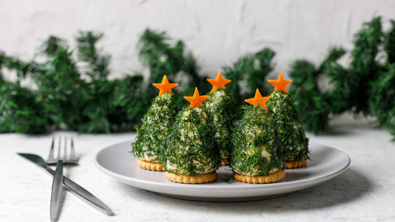 Árvores de Natal com endro e cream cheese em biscoitos crocantes, sem dúvida, vão adicionar um toque festivo à sua mesa.