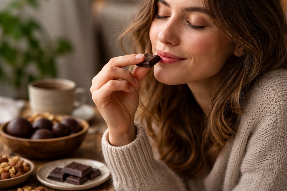 Esse tipo promove maior saciedade do que a versão ao leite e pode ajudar a diminuir a compulsão por doces e alimentos gordurosos. Para quem está controlando o peso, a melhor escolha é sempre o amargo, com 70% de cacau ou mais, consumido em pequenas porções e ocasionalmente.